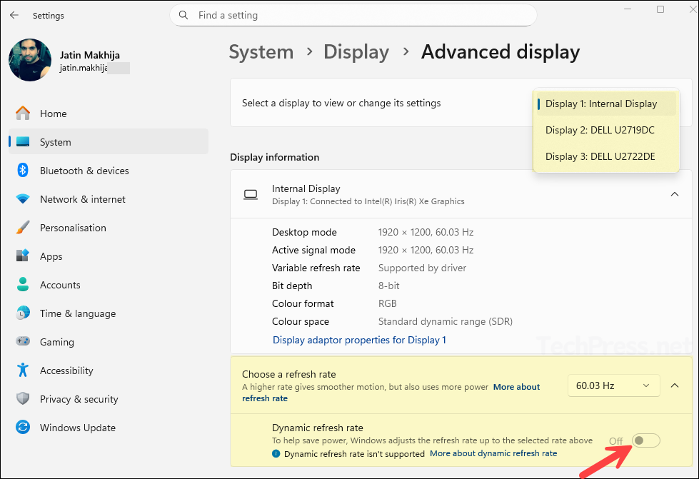 Below steps will guide you on how to enable or disable Dynamic refresh rate using the Settings app on a Windows 11 device.