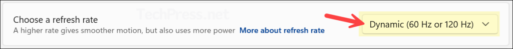 • Choose a refresh rate and select the one with Dynamic in its name.