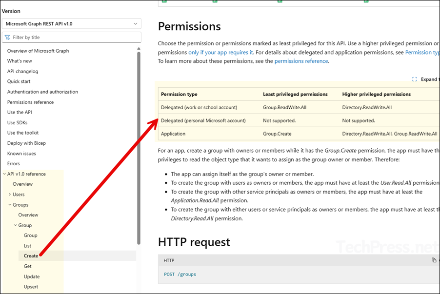 Another helpful resource is the Microsoft Graph REST API reference. It lists all the objects on the left-hand side, expand it and click on an action like List or Create, the required permissions are shown on the right-hand side under the Permissions section.