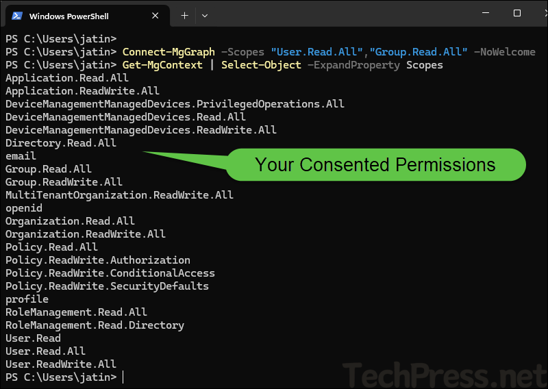 Get-MgContext | Select-Object -ExpandProperty Scopes